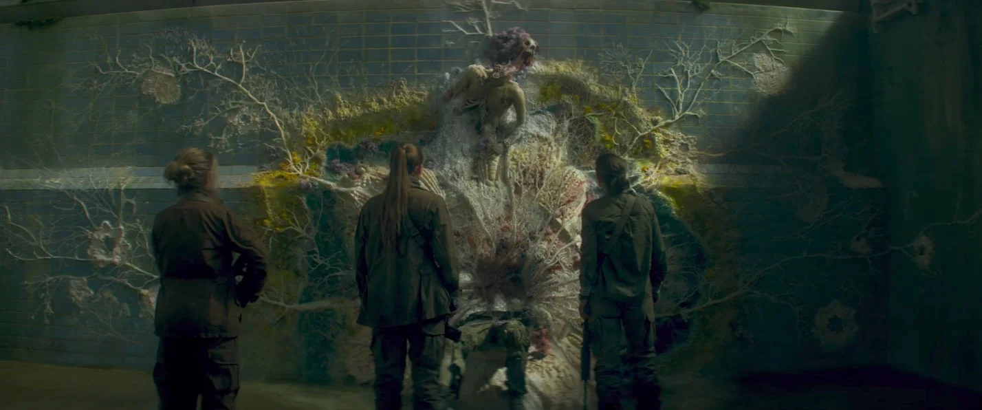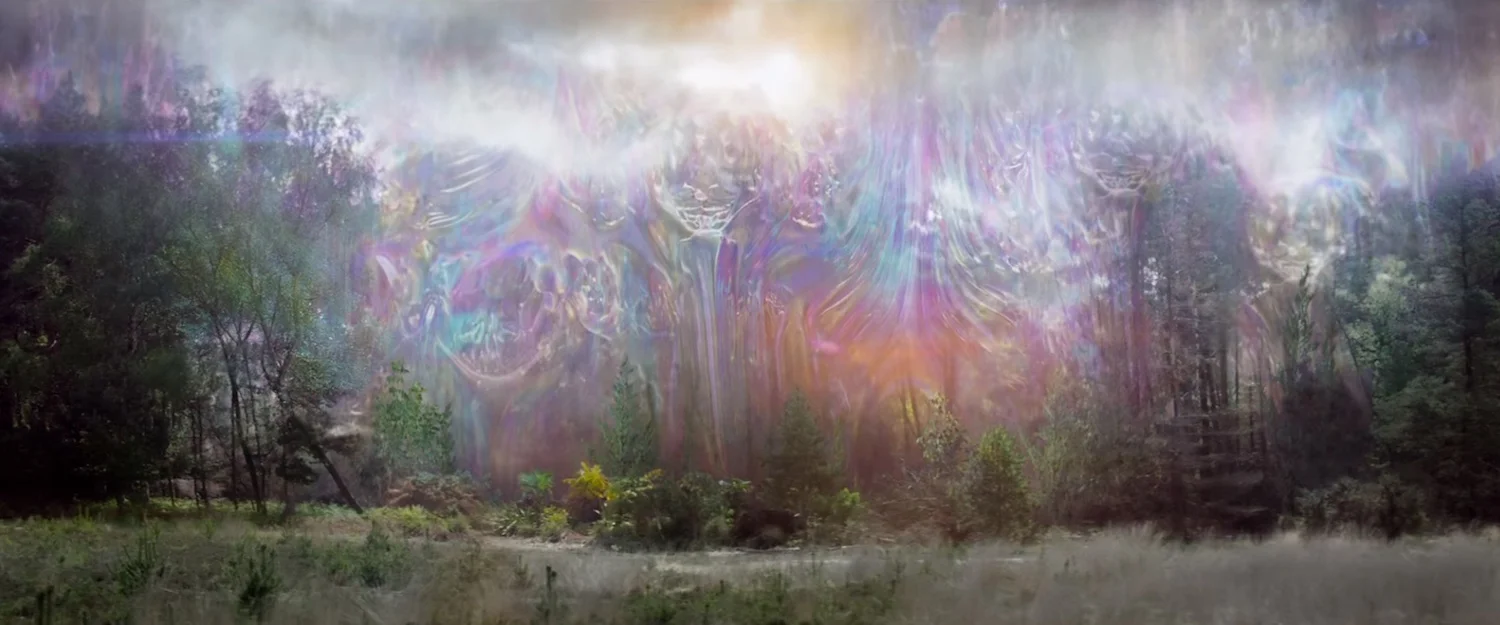 The five women enter the glistering field of shifting pastel colors and immediately lose time. After dreaming about recent events from her life, Lena wakes up in a tent to discover that days have passed since she and the team embarked on their mission. None of the women can recall anything that took place between the moment they entered the electromagnetic field and when they awoke in their tents.